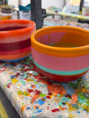Creating surfboards makes a ton of waste. Over the last year I really wanted to find a way to reduce my waste when building boards. This is one of the ways I have begun to do so. I am upcycling my left over epoxy resin. After you finish glassing a surfboard there is excess resin that just ends up in the trash. I am taking that resin and pouring it into molds and creating unique and absolutely one of a kind cups, bowls, planters, candle holders... whatever you want them to be! It has been so much fun to take something that would have ended up in a landfill and making it into something you can cherish and use for years to come. enjoy!